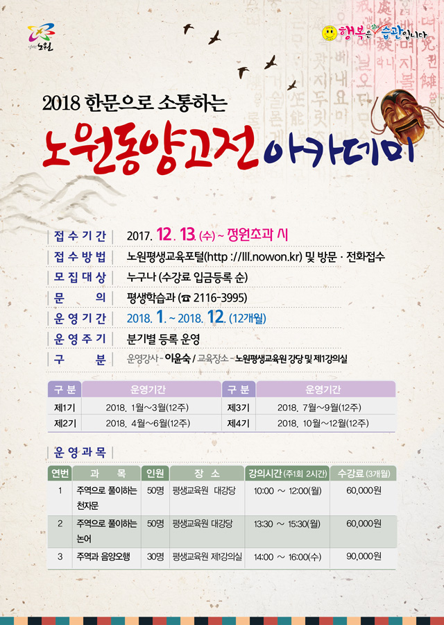 노원 「동양고전아카데미」 제1기 수강생 모집