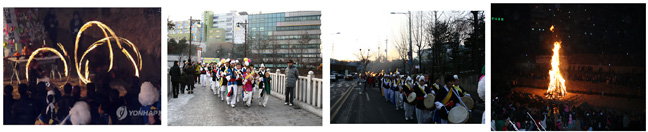 ▶기타행사 : 부럼깨기, 소원빌기, 불깡통돌리기, 민속공연, 고사지내기, 귀밝이술마시기 등