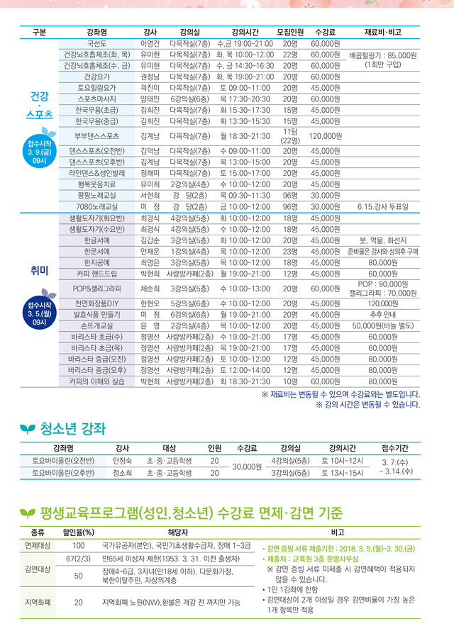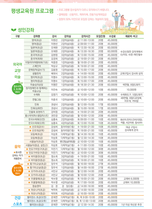 ※ 프로그램별 접수일자가 다르니 유의하시기 바랍니다.