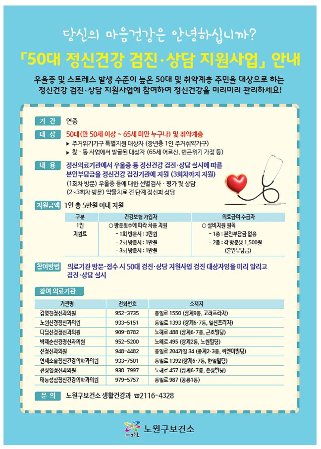 50대 정신건강 검진·상담 지원사업