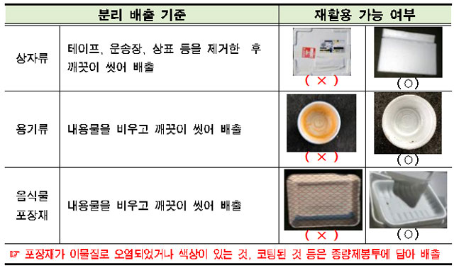 ※ 비닐류와 폐스티로폼을 올바르게 배출하여야 재활용이 가능하며, 분리배출 기준에 맞지 않게 배출하면 재활용되지 못하고 폐기물로 처분됩니다. ※ 재활용 분리배출 기준을 위반시에는 폐기물관리법에 의거 과태료 부과 대상이 됩니다.