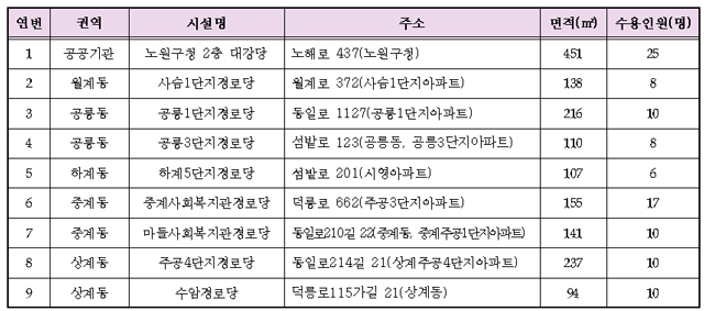 ▶ 운영장소 : 9개소(구청 1, 경로당 8)