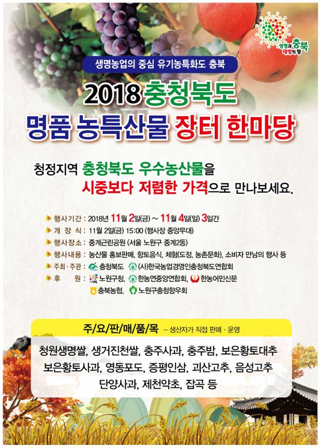 ▶ 행사명 :「2018년 충북 명품 농·특산물 장터 한마당」