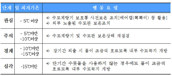♧ 겨울철 기온 단계별 행동요령