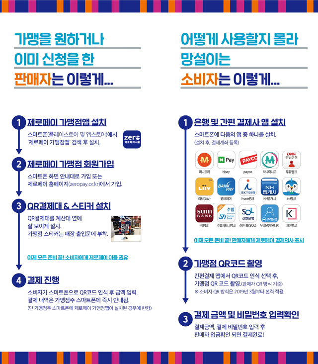 사회적 결제비용을 절감하여 소비자와 소상공인 모두에게 혜택을 돌려주고자 ‘제로페이 서울’ 시범서비스가 시작되었습니다. 연말 소득공제 47만원 더 받는 제로페이 서울! 많은 이용 부탁드립니다.