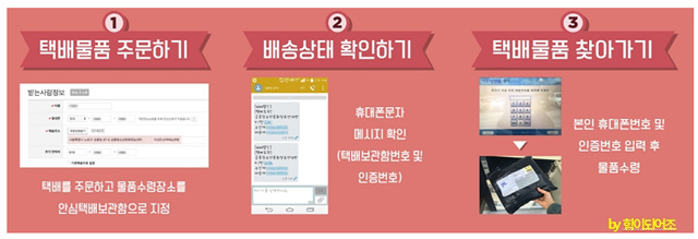 ▶ 여성안심택배란 : 택배사칭 등 여성범죄예방을 위하여 낯선 사람을 직접 대면하지 않고, 거주지 인근지역에 설치된 무인택배보관함을 통해 택배 물품을 수령하는 서비스 ▶ 이용대상 : 시민 누구나 이용 가능 ▶ 이용요금 : 무료 ▶ 이용시간 : 24시간 365일 운영 (48시간 이후 수령 시 1일 1,000원 추가요금 과금) ▶ 이용절차