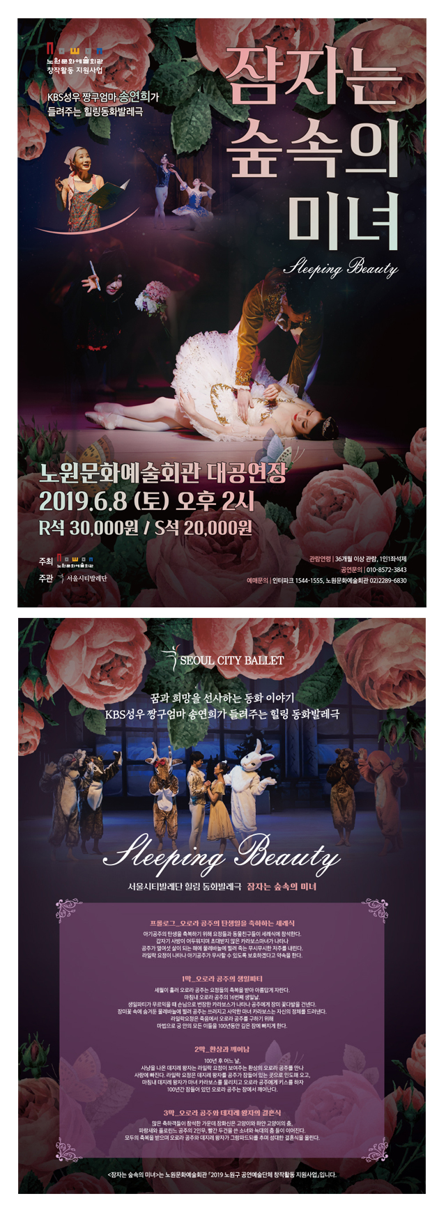 ▶ 일시 : 2019. 6. 8.(토) 14:00 ▶ 장소 : 노원문화예술회관 대공연장▶ 티켓 : R석 3만원, S석 2만원▶ 장르 : 발레▶ 관람연령 : 36개월 이상▶ 문의 : ☎ 010-8572-3843