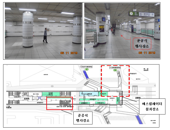 공사명 7호선 하계역 외부 에스컬레이터 설치공사 공사기간 2017. 9. ~ 2019. 7. (22개월)