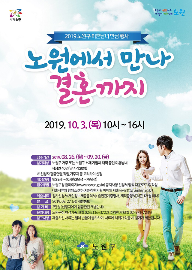 ▶ 참가대상 : 노원구 거주 또는 노원구 소재 기업체 재직 중인 미혼남녀 직장인 40명