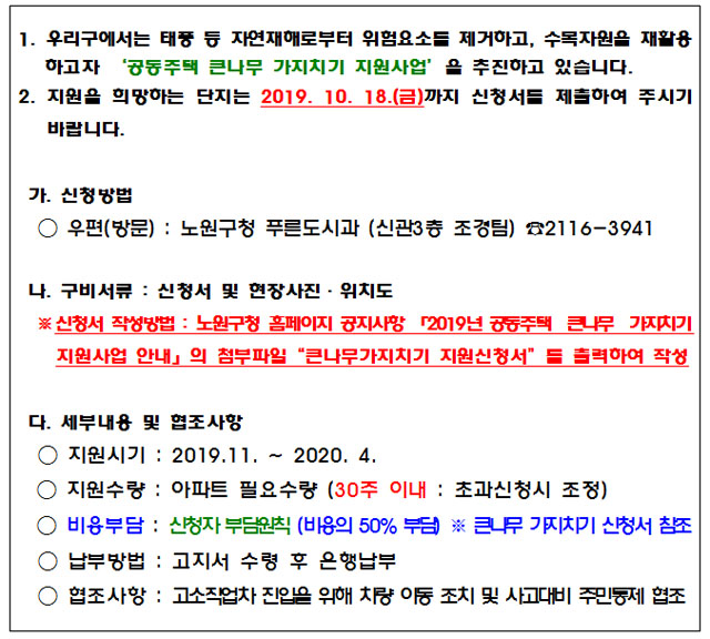 2019년 공동주택 큰나무 가지치기 지원사업 신청 안내
