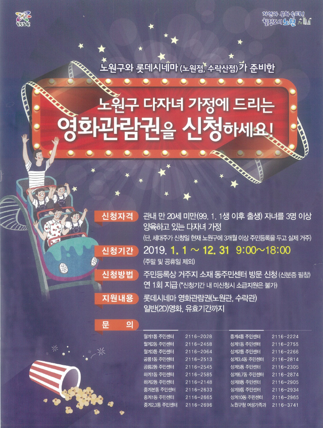 노원구 다자녀가정 무료 영화관람권 신청 안내