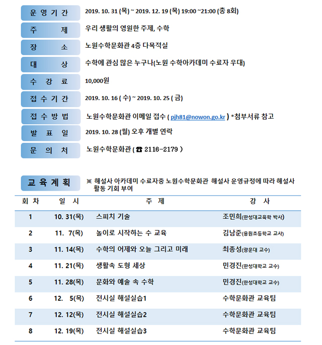 노원수학문화관 해설사 아카데미 수강생 모집