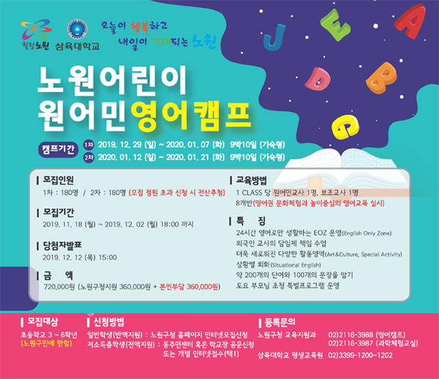 ▶ 참가대상 : 현재 초등학교 3학년 ~ 6학년 학생 (노원구 구민에 한함)
