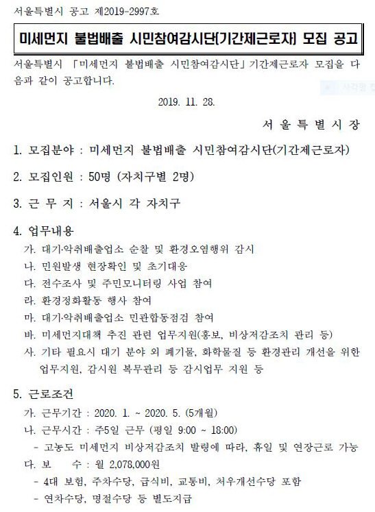 미세먼지 불법배출 시민참여단 기간제 근로자 모집 공고