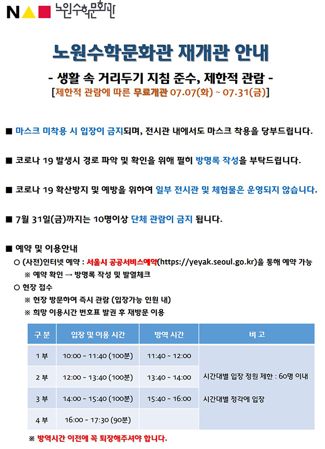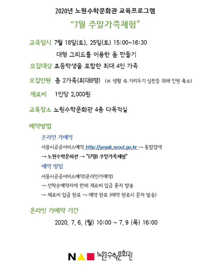 노원수학문화관 재개관 및 7월 체험탐구활동 안내