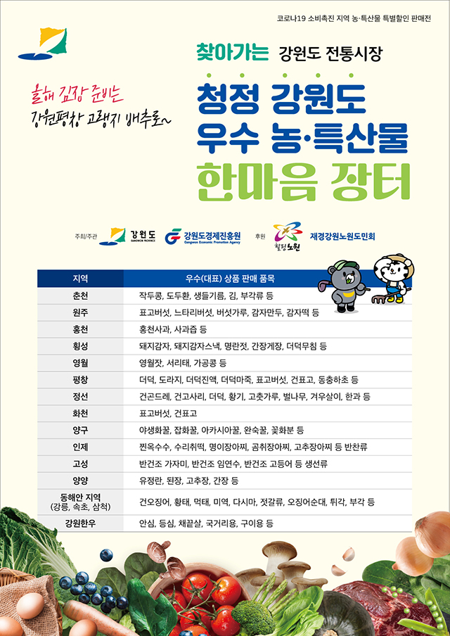 내용 : 강원도 전통시장 직거래장터 운영, 먹거리 시식 등