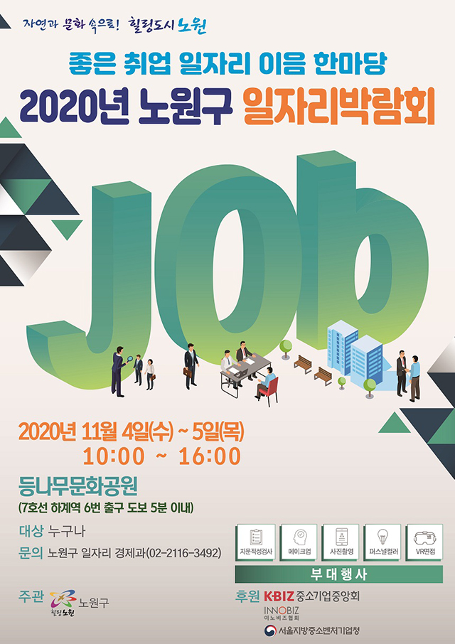 ▶ 세부내용 : 70여개의 부스, 40개 기업의 현장 면접과 채용, 관내 9개 일자리 유관기관의 구직등록 및 알선 면접사진 촬영, 지문적성검사 등 체험부스 5개, 캘리그라피와 생활한복 등 프리마켓 존 12개 부스▶ 구직신청서 다운받기 ▶ 문의 : 일자리경제과 ☎ 02-2116-3492