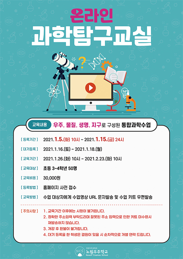 노원우주학교 온라인 과학탐구교실 신청 안내